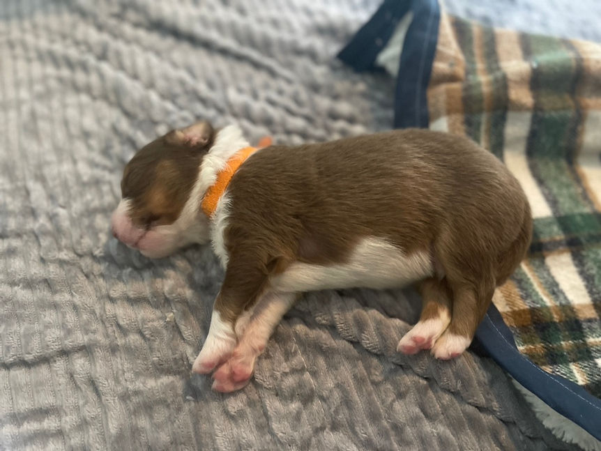 Waffles is a male, tri-color, red, white and tan, Australian Shepherd puppy. He has tan markings above his eyes, giving him "eyebrows", which will be so adorable! We will keep you updated on his progress. Red, Tri-color Australian Shepherds are one of the more unique coat combinations, as they aren't as common as black tri-color coats.