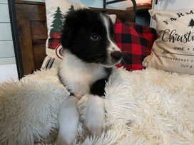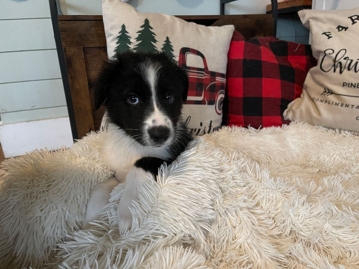 Liloo is a Bi-Color, black and white Australian Shepherd, which is one of the more rare coat colors for Aussies.